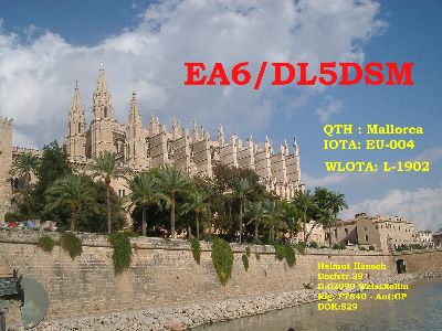 Mostly in October we spend one week @ Mallorca.(XYL,grandchildren and me) New QSL : QTH Sa Coma / EA6-Eastcoast (Pic: Cathedrale in Palma)