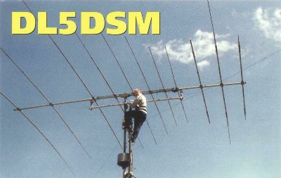 My default home-QSL for 10 years now. The pic shows me on the Tower of our clubstation DK0HY. The antenna is a TH11DX 45m up