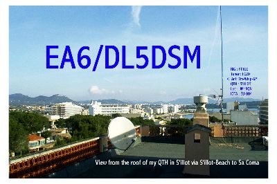 Former QSL from EA6/DL5DSM (2005/2006). QTH S'illot (nr Sa Coma)